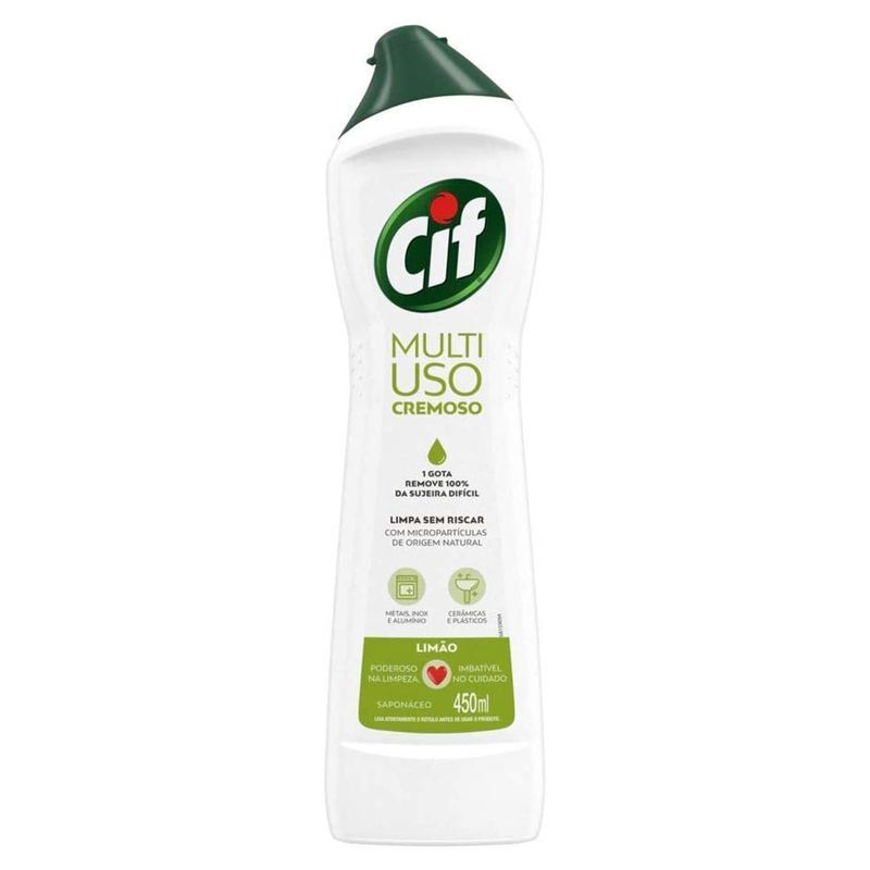 Descubra o poder do Sapólio Cremoso Limão Cif 450ml, o aliado perfeito para uma limpeza profunda e um brilho impecável em mais de 100 superfícies. Com sua fórmula avançada, este limpador cremoso remove 100% da sujeira difícil sem esforço, garantindo resultados surpreendentes. Mais concentrado, ele rende o equivalente a 7 garrafas de um limpador comum, oferecendo economia e eficiência. Ideal para a limpeza diária ou para as sujeiras mais pesadas, o Cif Cremoso Limão limpa sem riscar, protegendo suas superfícies e deixando um aroma fresco e agradável de limão.